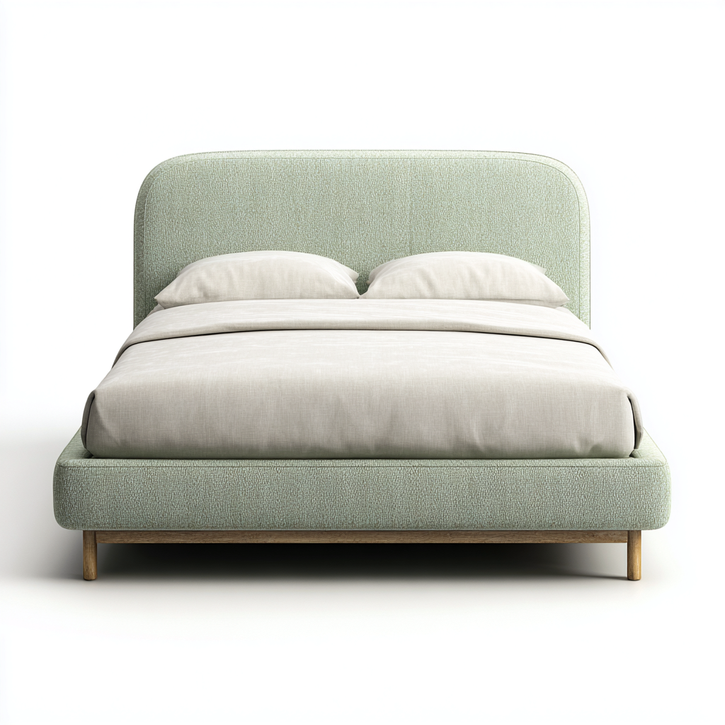 Cama matrimonial-tela-madera-210x168x102 cm-verde claro-beige-moderno