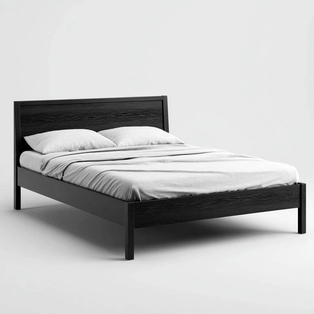 Cama matrimonial-madera-216x168x112 cm-negro-blanco-moderno