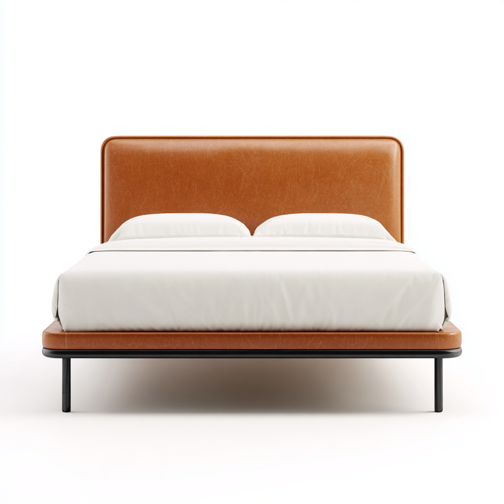 Cama matrimonial-cuero-metal-216x168x114 cm-marrón claro-blanco-moderno