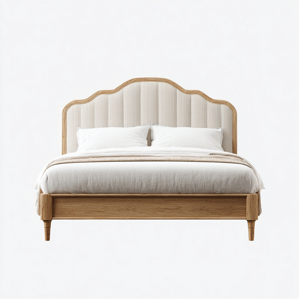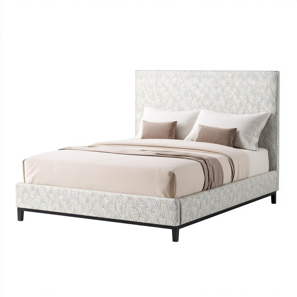 Cama matrimonial-tela-madera-212x168x118 cm-marfil-beige-moderno