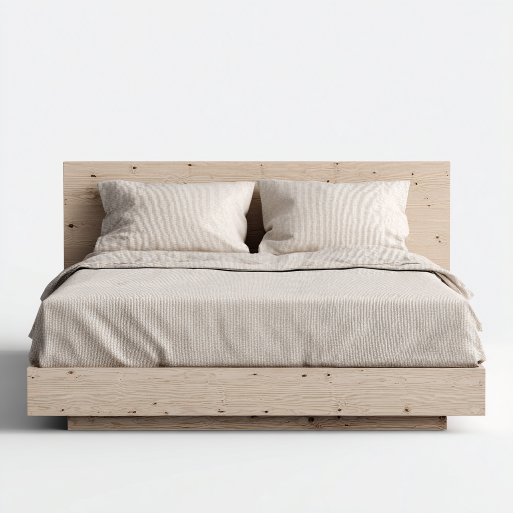 Cama matrimonial-madera-220x173x112 cm-madera-beige-rústico