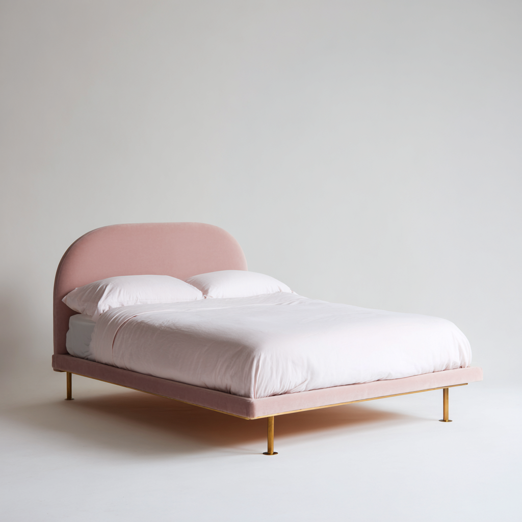Cama matrimonial-terciopelo-metal-213x166x109 cm-rosa claro-blanco-minimalista