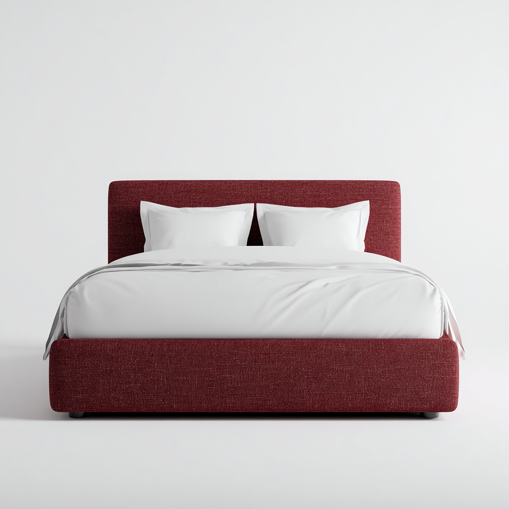 Cama matrimonial-tela-madera-215x170x108 cm-rojo oscuro-blanco-moderno