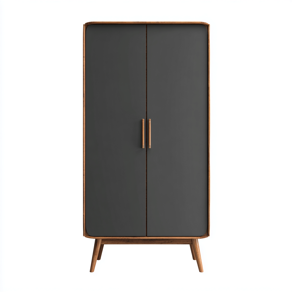 Armario de diseño moderno con estructura elevada y paneles frontales en color gris, adecuado para dormitorios que buscan una estética limpia y contemporánea.