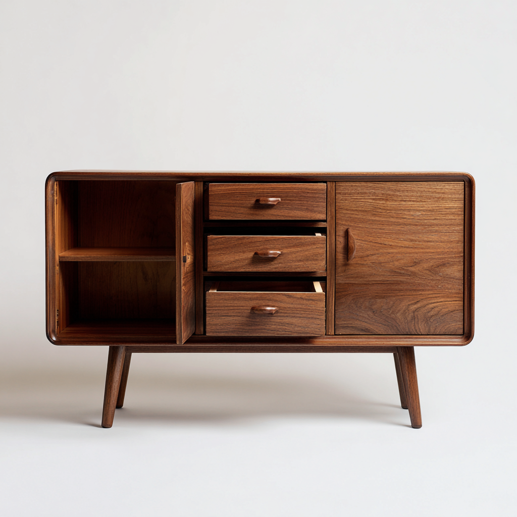 Incluye zonas internas que facilitan mantener organizados diversos artículos del hogar y una superficie superior práctica para elementos decorativos. Su forma estable y estilizada permite integrarse con facilidad en diferentes interiores.