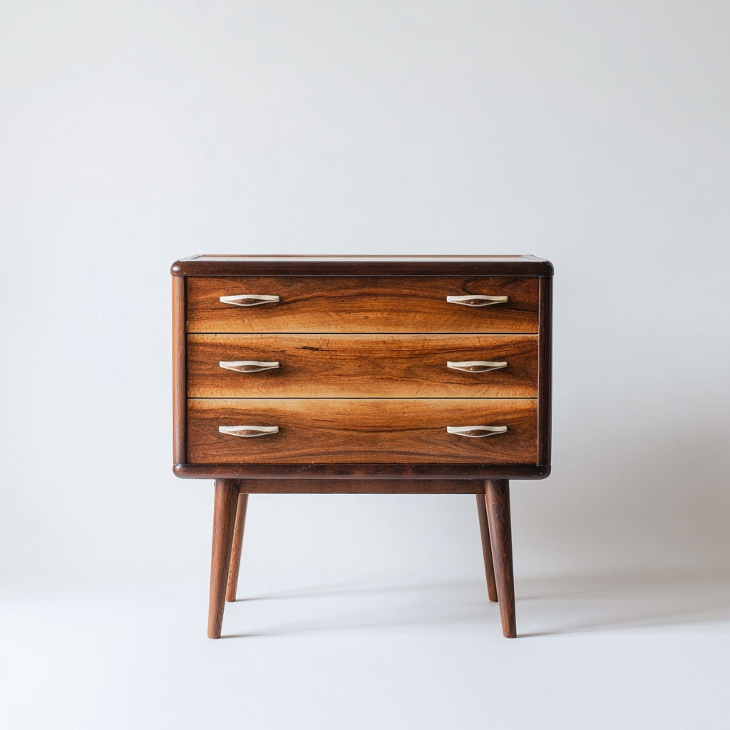 Cómoda de estilo vintage refinado elaborada en madera maciza, con un diseño equilibrado que combina líneas suaves y una presencia cálida para dormitorios y espacios de descanso.