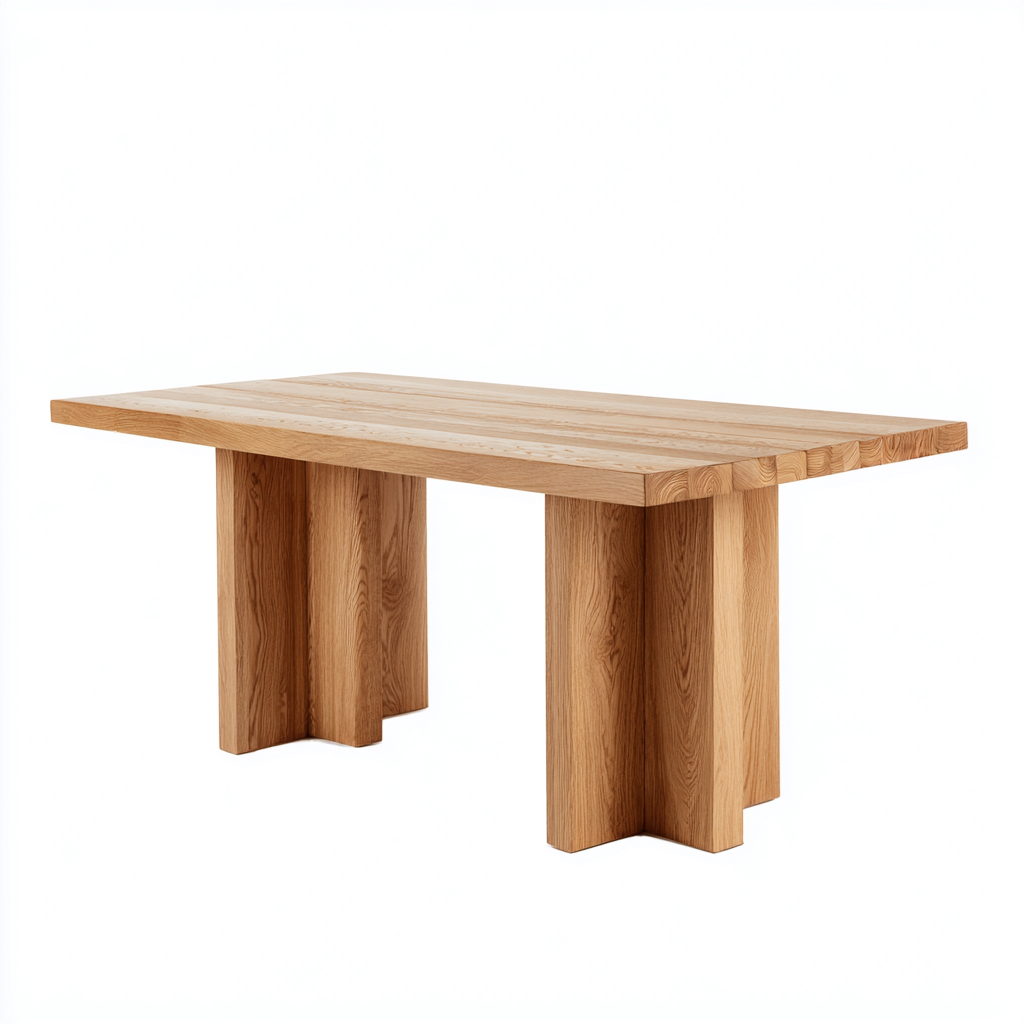 Esta mesa de comedor presenta un diseño moderno con líneas rectas y una estructura robusta de madera. Su estética natural permite integrarla con facilidad en comedores de distintos estilos, ofreciendo una superficie amplia para reuniones y comidas cotidianas.