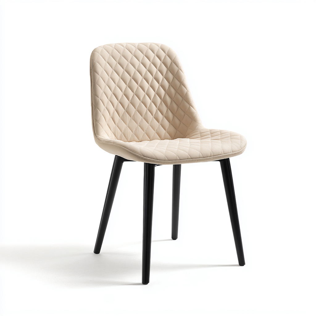 Esta silla de comedor presenta un diseño moderno con un patrón acolchado en forma de rombos que aporta una apariencia elegante y contemporánea. Su estructura ligera y su estilo versátil permiten integrarla con facilidad en comedores, cocinas o áreas de estar.