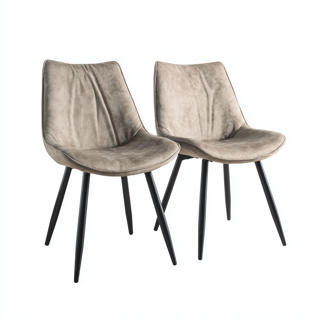 Este conjunto de sillas de comedor presenta un diseño moderno con líneas suaves y un acabado elegante. El tapizado en terciopelo beige aporta una apariencia cálida y agradable, lo que permite integrarlas fácilmente en comedores, cocinas u otros espacios interiores.