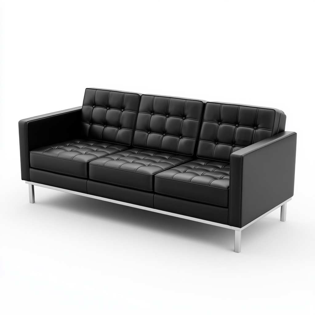 Sofá de 3 plazas con líneas definidas y tapizado en negro que aporta un carácter contemporáneo y elegante al espacio.