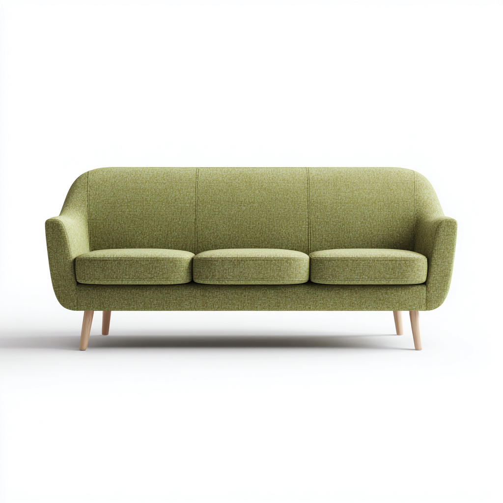 El sofa esta tapizado en tela verde de textura suave y resistente. Las patas de madera clara aportan estabilidad y un acabado natural.